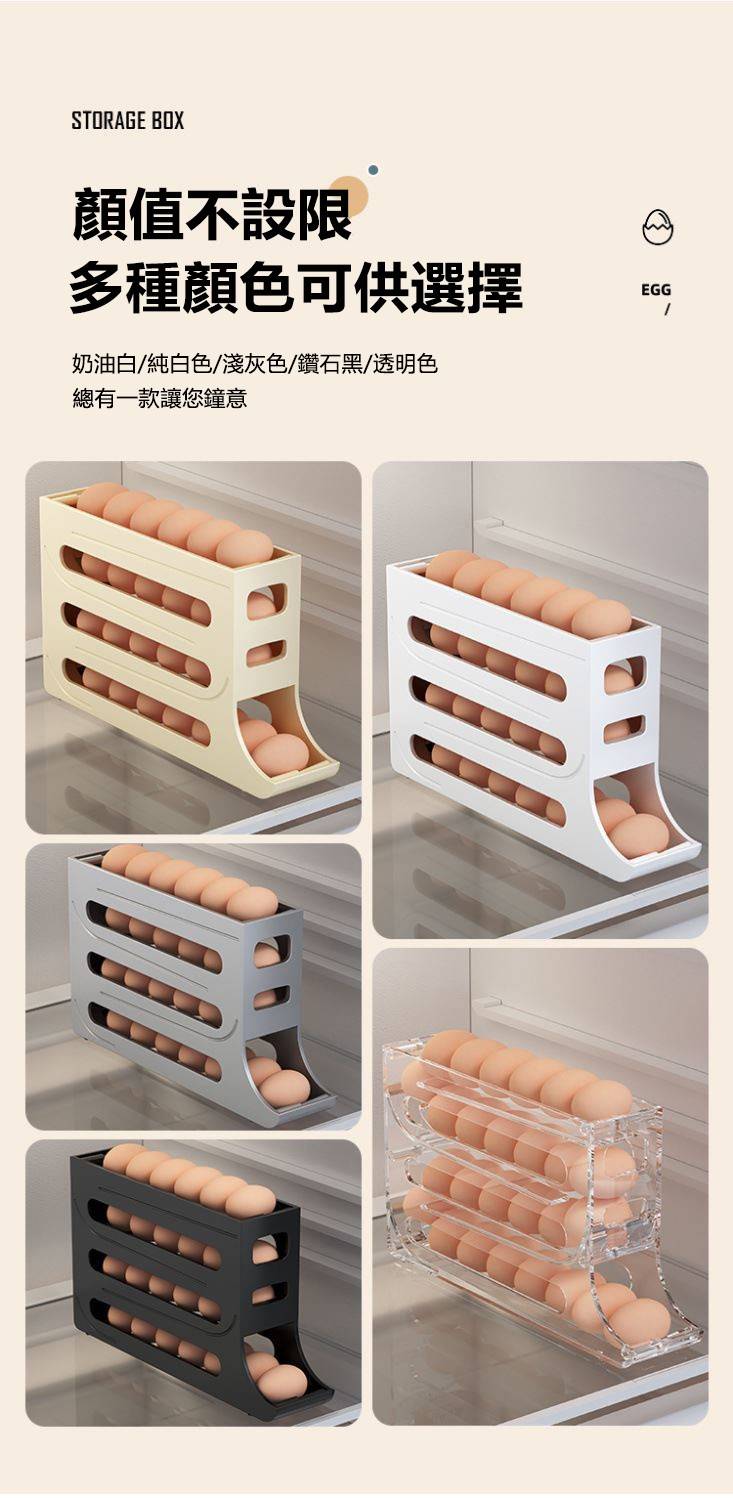 2分鐘前自動滾蛋式雞蛋收納盒 - 3入组(可放90個雞蛋)NT$1098